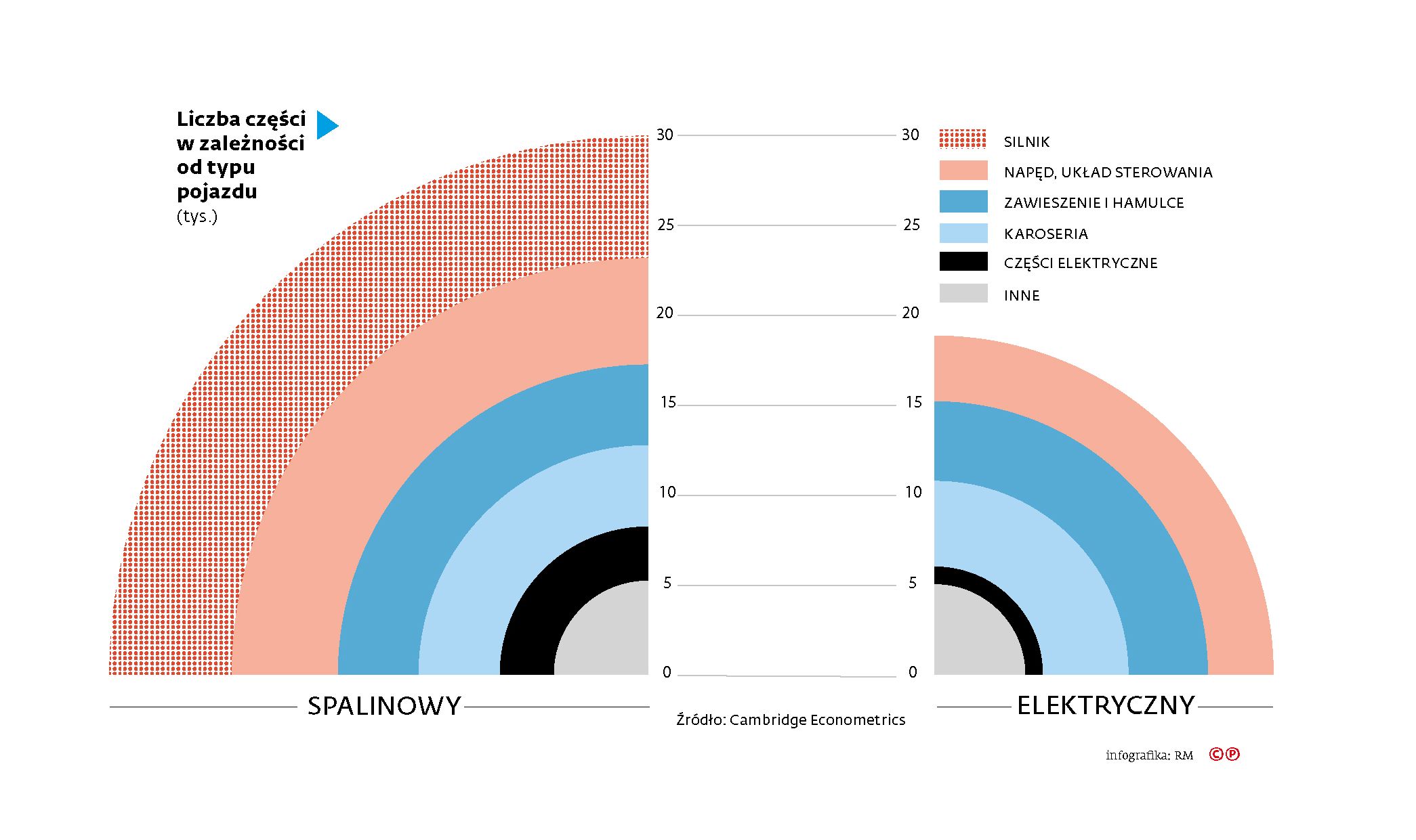 Polska stała się jednym z najważniejszych dostawców części motoryzacyjnych na świecie. Samochody elektryczne są jednak prostsze od swoich kuzynów o napędzie spalinowym – średnio mają o 1/3 części mniej. Jak wpłynie to na kondycję branży w Polsce?